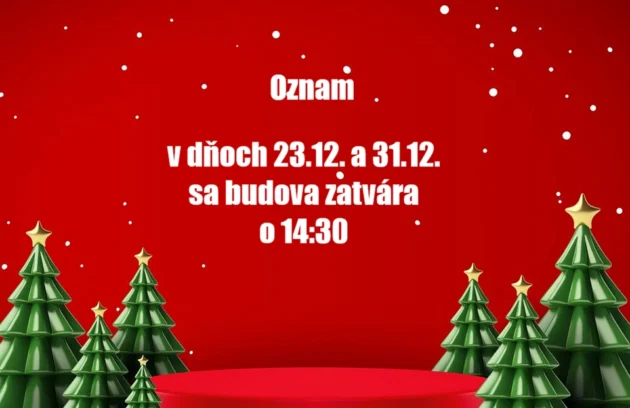 Vážení návštevníci, dovoľujeme si Vás upozorniť na zmenu otváracích hodín počas Vianočného obdobia. Budova Polikliniky sa v dňoch…