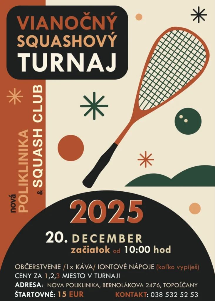 Pozývame všetkých priaznivcov squashu na tradičný Vianočný squashový turnaj.